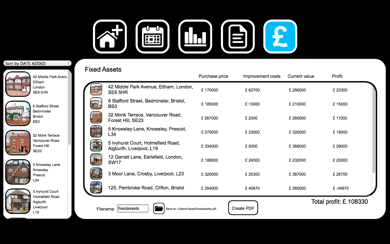 • View a summary of your fixed assets based on the purchase price, improvement costs and current value of each property that you have supplied.