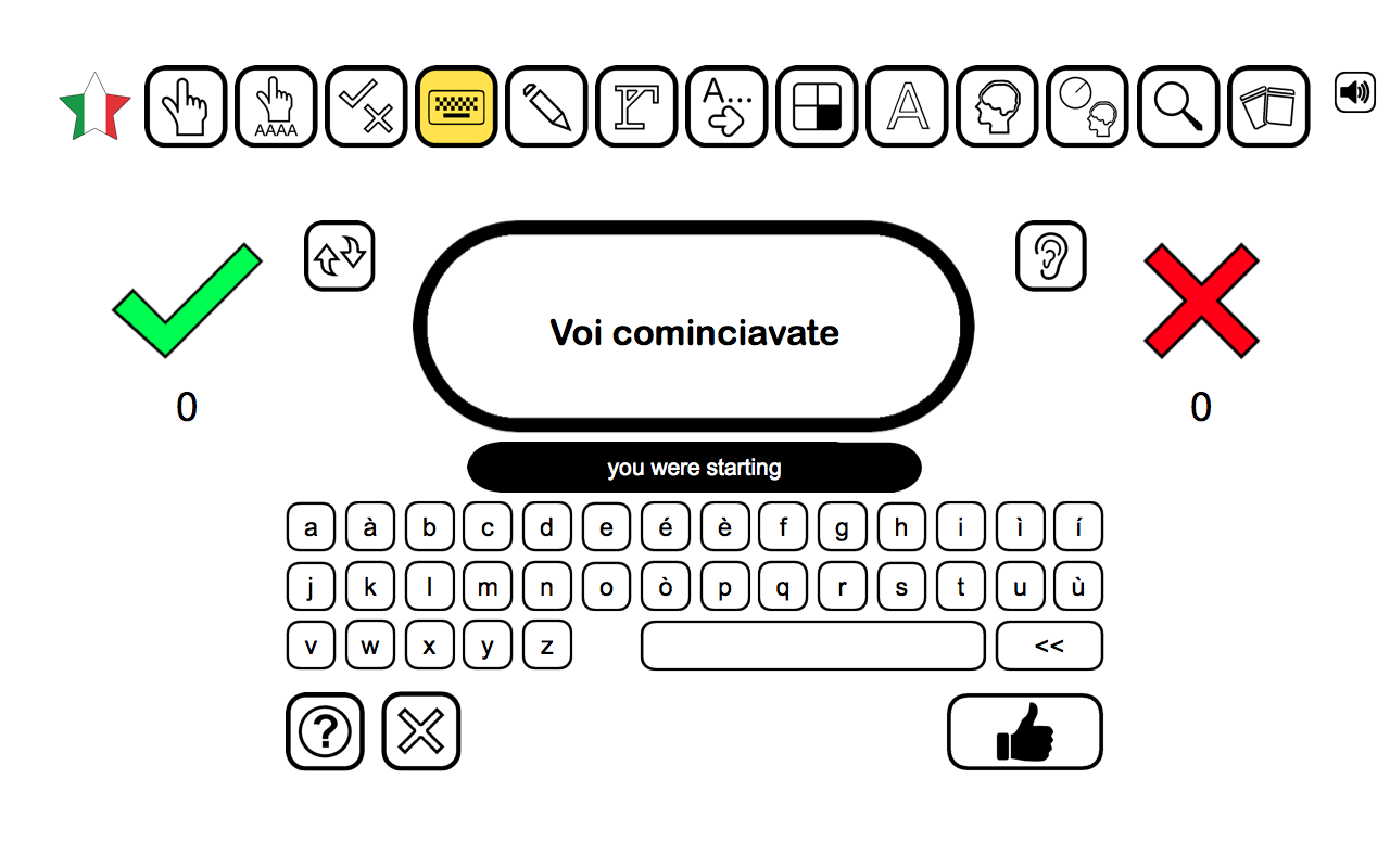 • Spelling test: spell the given word's translation correctly without getting a letter wrong.