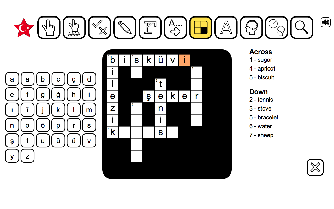 • Guess the word: select the correct image using the characters of a given word that are shown. The less characters that you need to be shown in order to guess what the word's meaning is, the more points you will get. Try to get as many points in 60 seconds as you can.