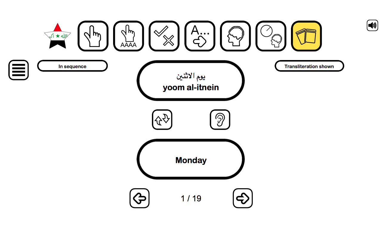 • Memory match: flip over two cards at a time to find the chosen language's words and their corresponding translations, until all pairs have been found.